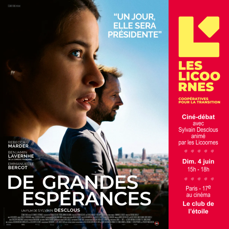 Dans le cadre des Rendez-vous citoyens au Club de l’Étoile, les Licoornes, coopératives pour la transition, vous proposent la projection du film De Grandes espérances. La projection sera suivie d’une rencontre avec Sylvain Desclous réalisateur du film, Sylvie Dreyfus-Alphandéry, présidente d’Autour du 1er mai, et Adrien Montagut, administrateur des Licoornes et co-fondateur de la coopérative Commown.